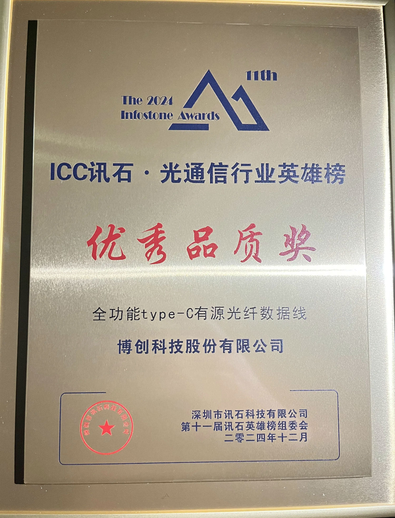 人生就是博科技股份有限公司(以下称“人生就是博科技”,证券代码:300548.SZ)作为行业领军企业,受邀出席聚会。旗下明星产品长芯盛全功效type-C有源光纤数据线,依附其卓越性能及自主立异设计,荣获“ICC讯石·光通讯行业英雄榜优异品质奖”,赢得与会者的高度评价。
