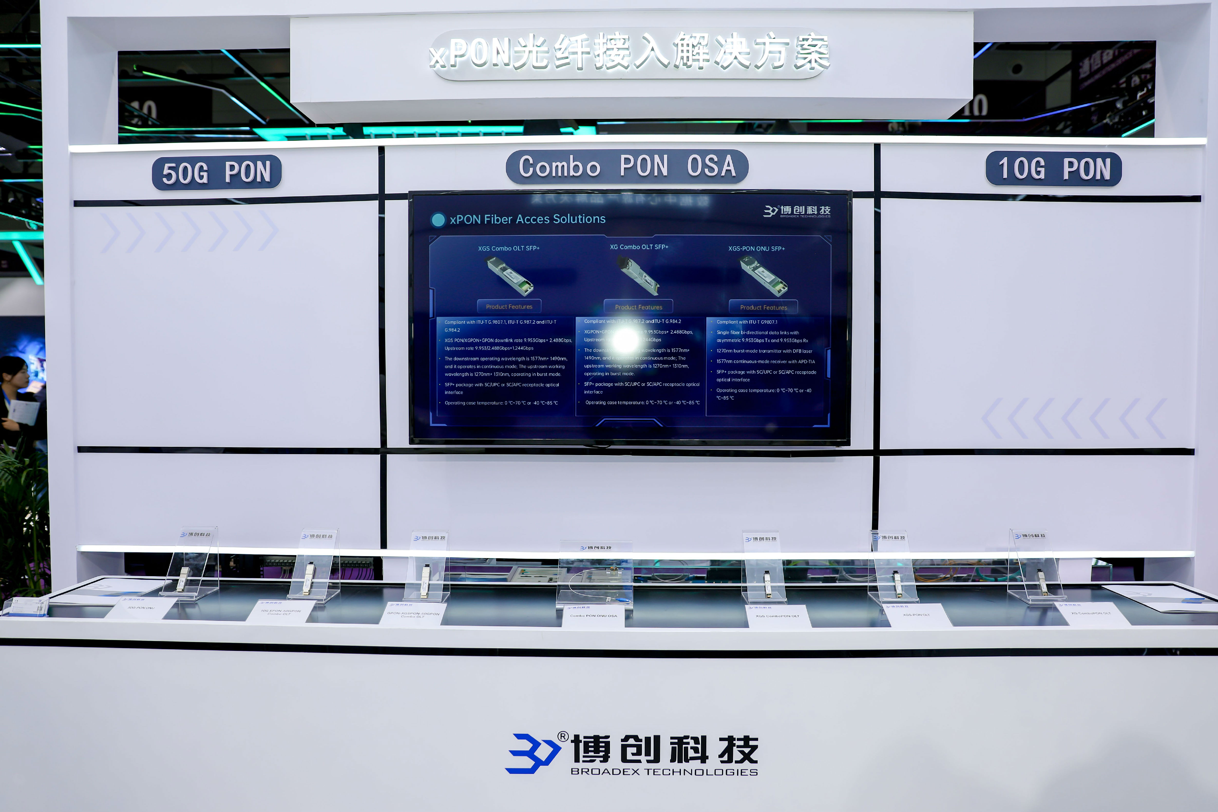 ÈËÉú¾ÍÊDz©¿Æ¼¼´Ë´ÎÕ¹³öµÄµçÐŽÓÈëÍøPON¹âÄ£¿é°üÀ¨EPON¡¢GPON¡¢10G PON¡¢50G PONµÈȫϵÁвúÆ·£¬ÁýÕÖSFP¡¢SFP+¡¢DSFP¡¢QSFP28¡¢QSFP-DDµÈ²î±ð·â×°ÀàÐÍ£¬×î´ó¿ÉÖ§³Ö50GÈýÄ£µ¥ÏËÁùÏòÊý¾ÝÁ´Â·¡£