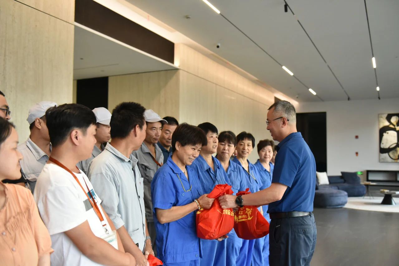 烈日当空,公司保安、保洁、厂务、客栈、清静员等户外岗位员工仍坚守一线,用汗水包管公司有序运转。人生就是博嘉兴总司理黄俊明带队走访慰问,为他们送上全心准备的清凉礼包——毛巾、洗衣液、绿豆、洗发水、沐浴露、花露珠等适用物资,并嘱咐各人注重防暑降温,科学安排作息时间。