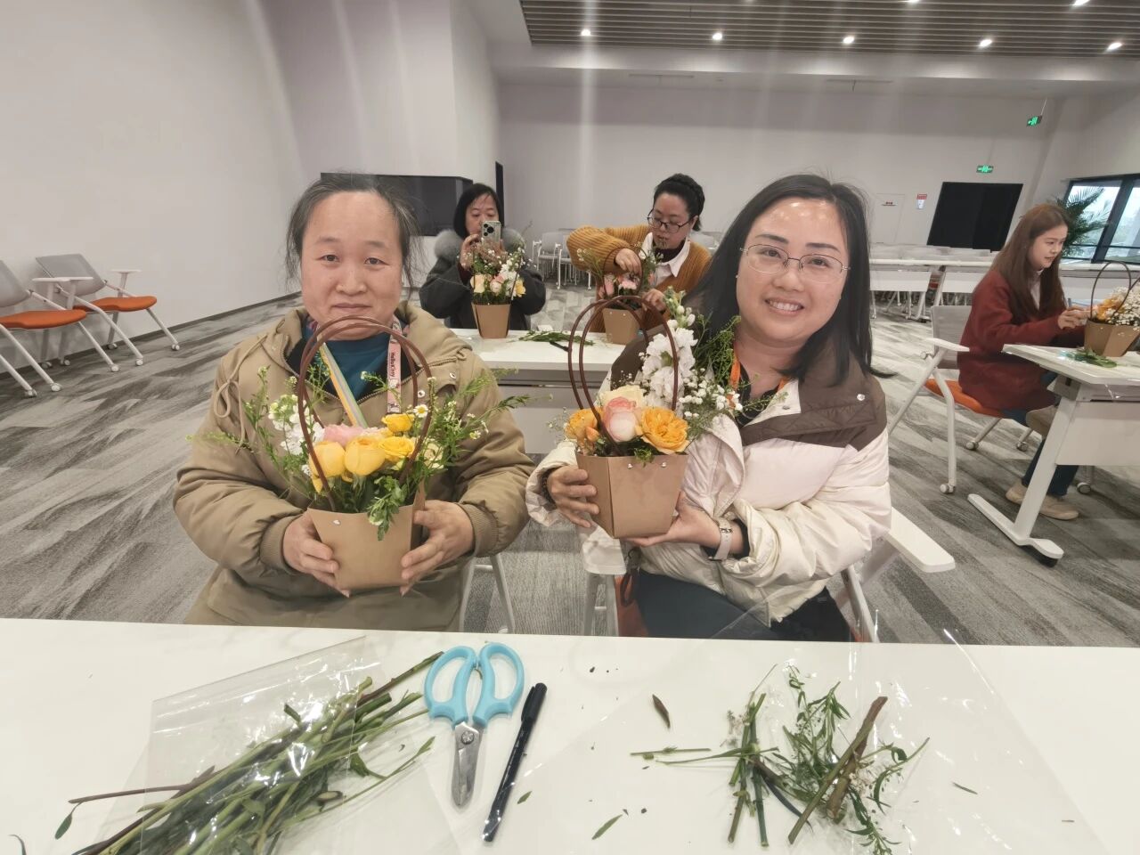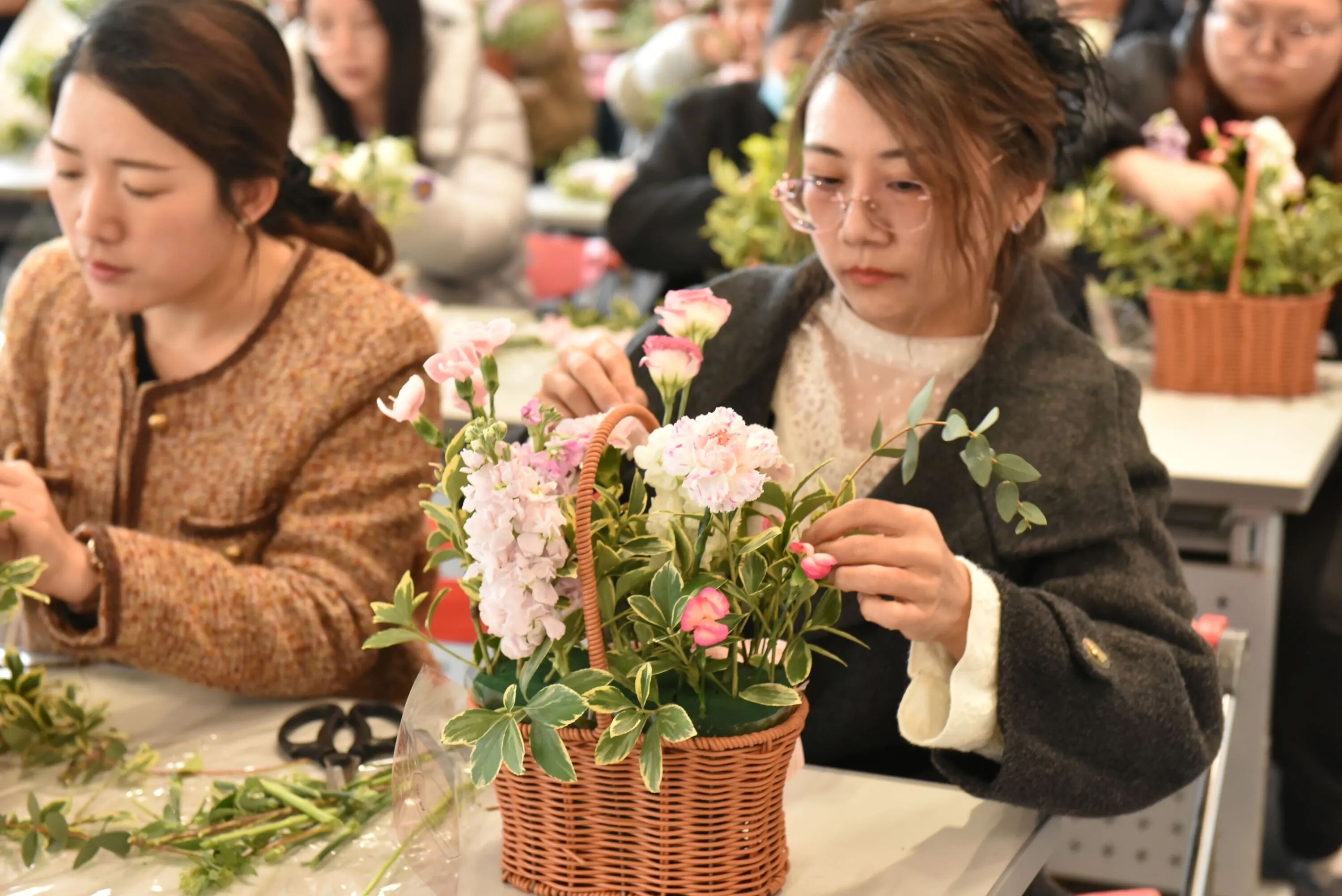 玫瑰的热情、康乃馨的温柔、洋桔梗的优雅……在女神们的巧手下,一朵朵鲜花被付与了新的生命。修剪、搭配、造型,每一个办法都专注而投入,似乎在创作一件唯一无二的艺术品。