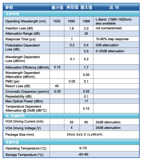 SVOA(1X1) 产品性能指标
