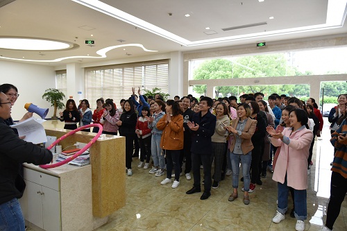 为富厚全体员工的精神文化生涯,缓解事情压力,增进在职员工之间的交流,并使得员工在事情之余体会到“团队合作”的另一种意义,增强凝聚力,公司于2018年4月14日下昼组织员工举行了一场精彩而强烈的“呼啦圈过山车”角逐。来自各部分及生产一线的120名员工加入了角逐。角逐共分为12个小组,每组为10人。