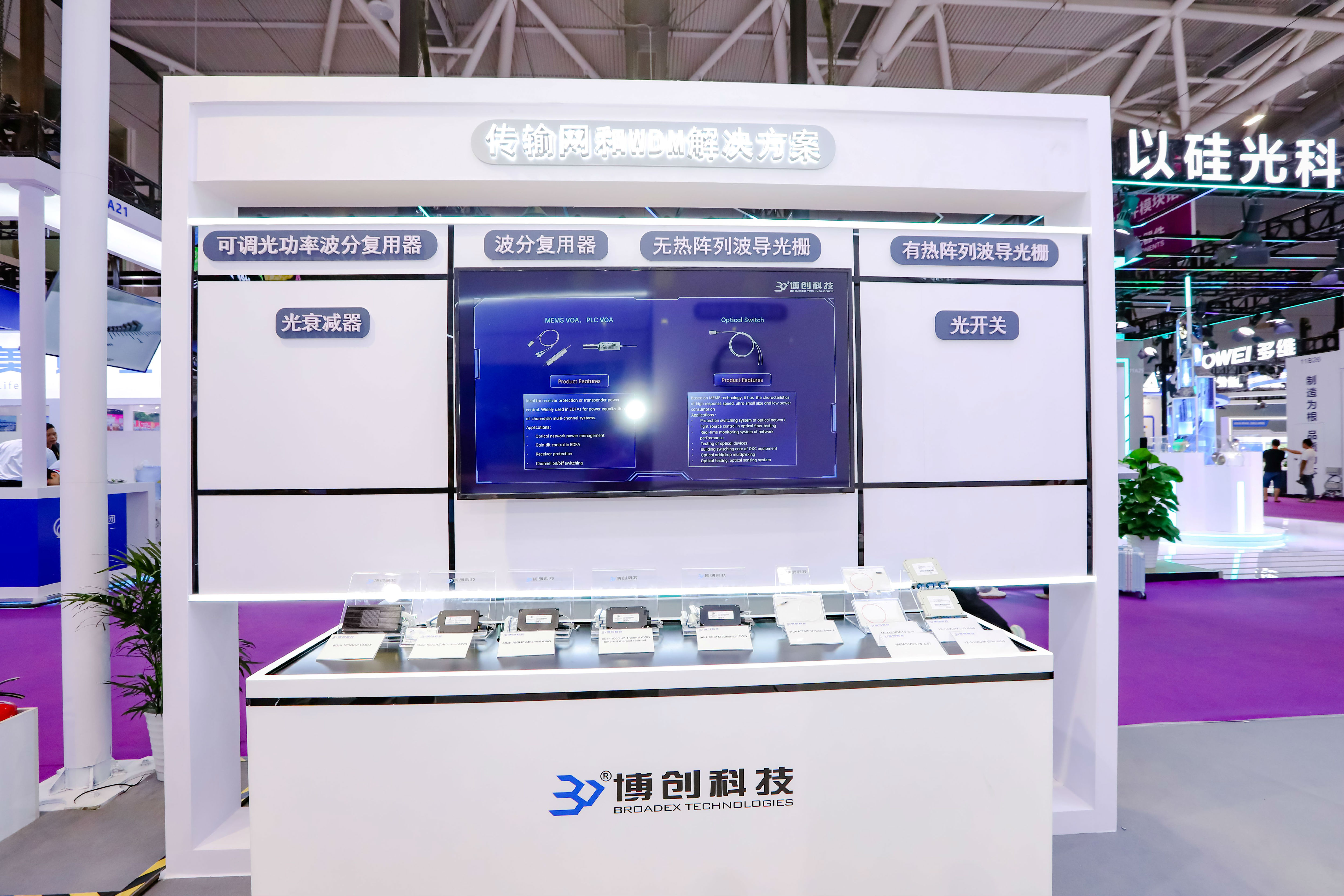 ÈËÉú¾ÍÊDz©¿Æ¼¼×¨×¢¼¯³É¹âµç×ÓÆ÷¼þµÄ¹æÄ£»¯Ó¦Óã¬ÓµÓÐ×ÔÖ÷¿ª·¢µÄÆ½Ãæ¹â²¨µ¼£¨PLC£©¡¢Î¢¹â»úµç£¨MEMS£©¡¢¹è¹â×Ӻ͸ßËÙÄ£¿é·â×°ËÄ´óÊÖÒÕÆ½Ì¨£¬±¾´ÎÕ¹»áչʾPLC¹â·Ö·Æ÷¡¢MEMS VOA£¨¿Éµ÷¹âË¥¼õÆ÷£©¡¢AWG£¨ÕóÁв¨µ¼¹âÕ¤£©µÈ²úÆ·£¬ÖÊÁ¿ÓÅÓÚÖÖÖÖÐÐÒµ±ê×¼ºÍÖÊÁ¿ÒªÇó¡£