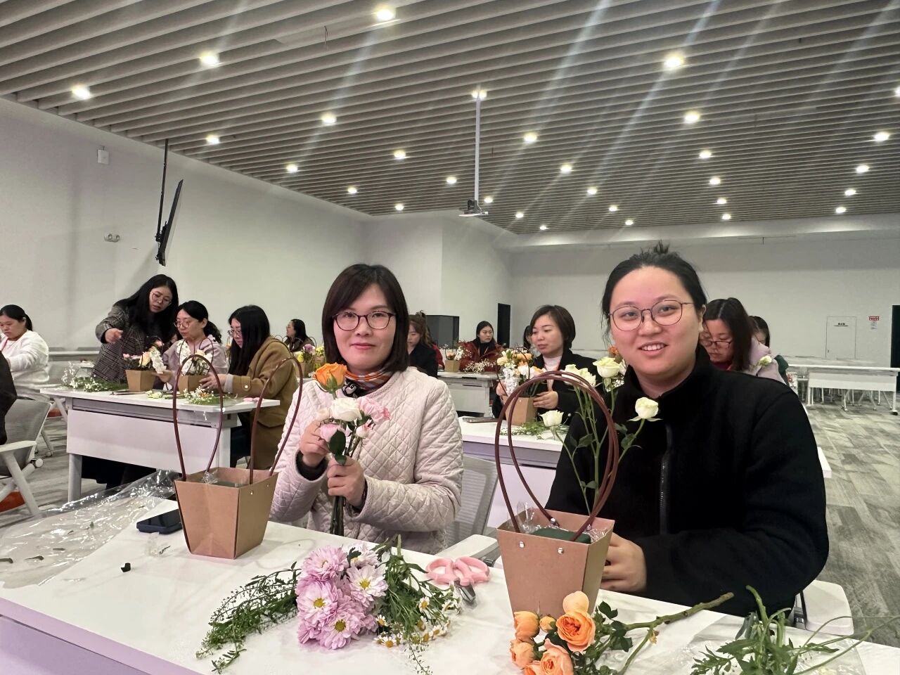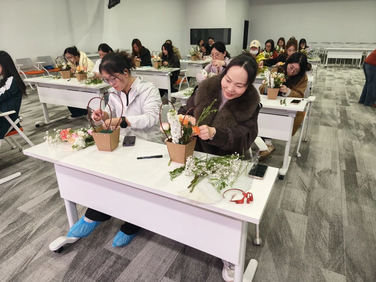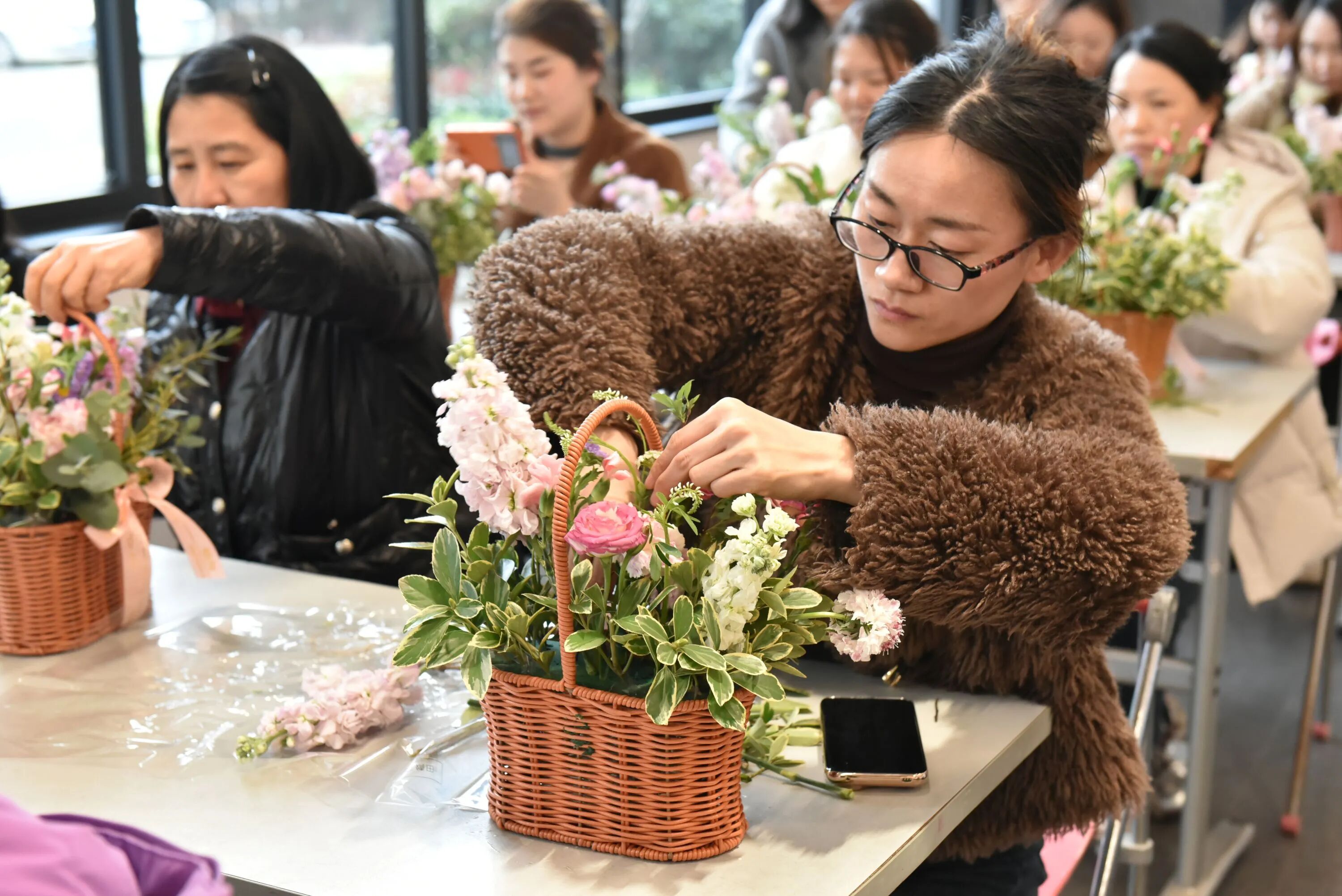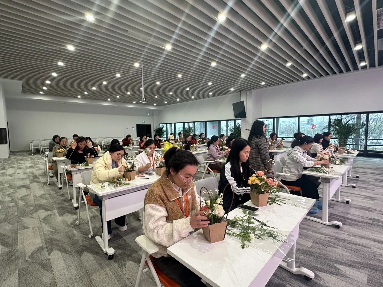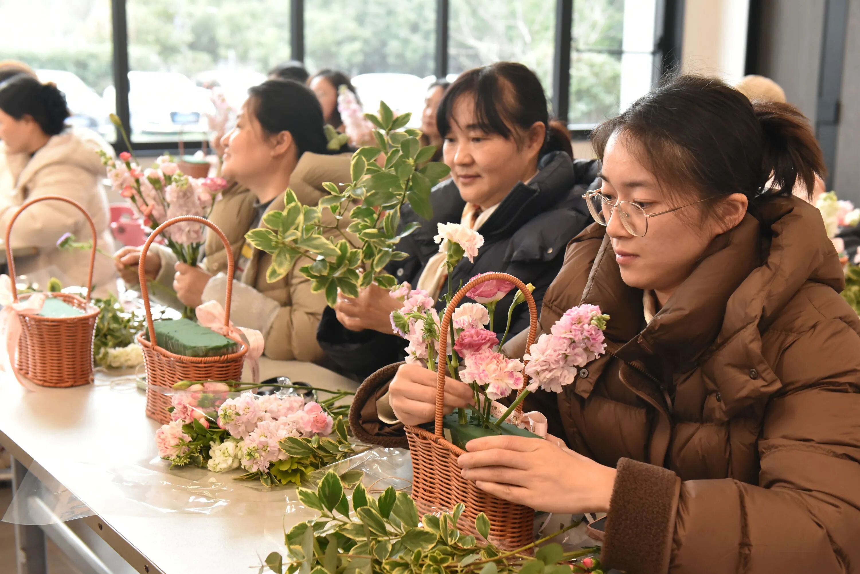 玫瑰的热情、康乃馨的温柔、洋桔梗的优雅……在女神们的巧手下,一朵朵鲜花被付与了新的生命。修剪、搭配、造型,每一个办法都专注而投入,似乎在创作一件唯一无二的艺术品。