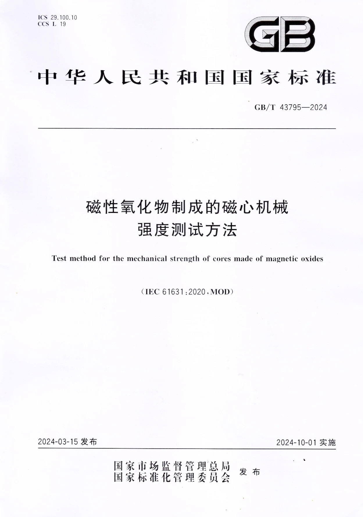 GB/T 43795-2024的正式宣布,将有用资助海内企业完善检测要领,提高产品质量,规范生产和生意行为,推进与国际标准同步,为铁氧体磁心和金属磁粉心工业的科研、生产、应用和商业起到起劲的推行动用。