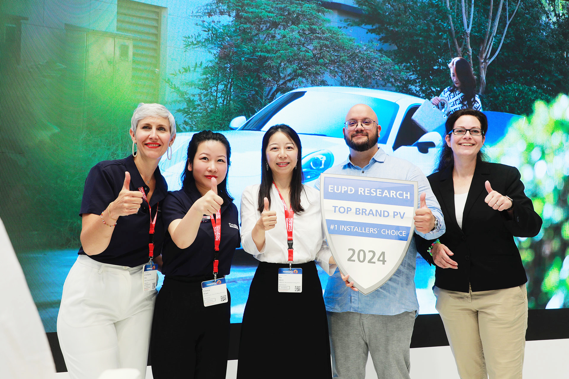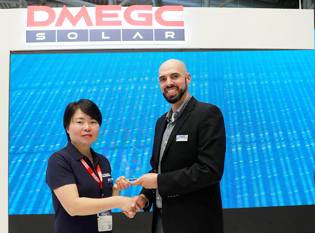 Kiwa PVEL现场揭晓PV Module Top Performer “光伏组件最佳体现制造商”证书和奖杯。